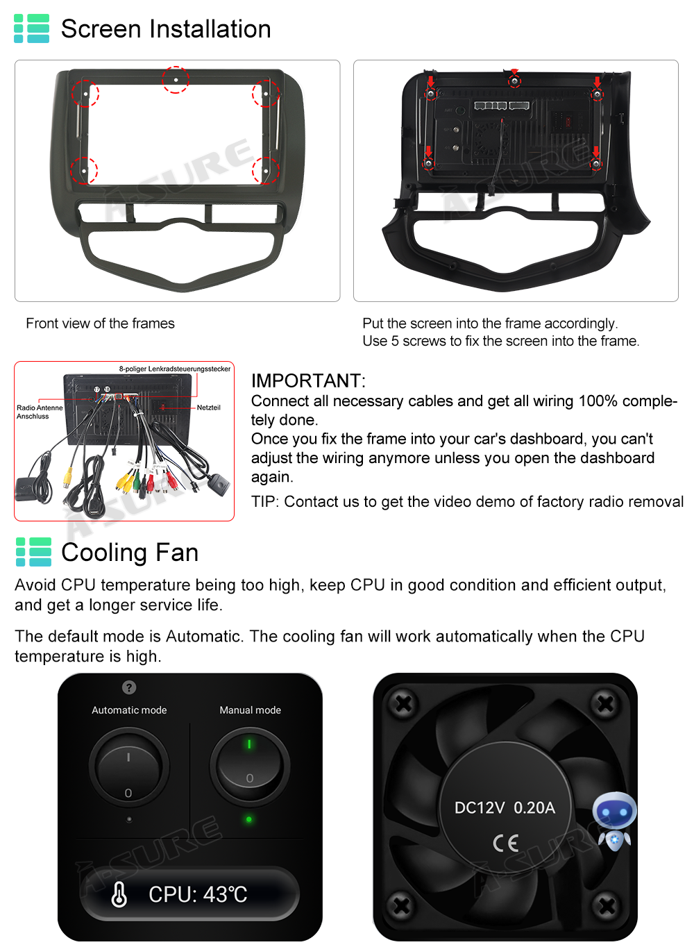 | A1 Note | please contact us to buy other suitable model., if your original radio with Manual AC |