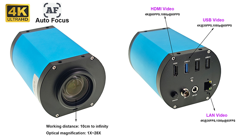 4K HDMI USB LAN 60FPS 28X Zoom Integrated Auto focus Industry Microscope Camera