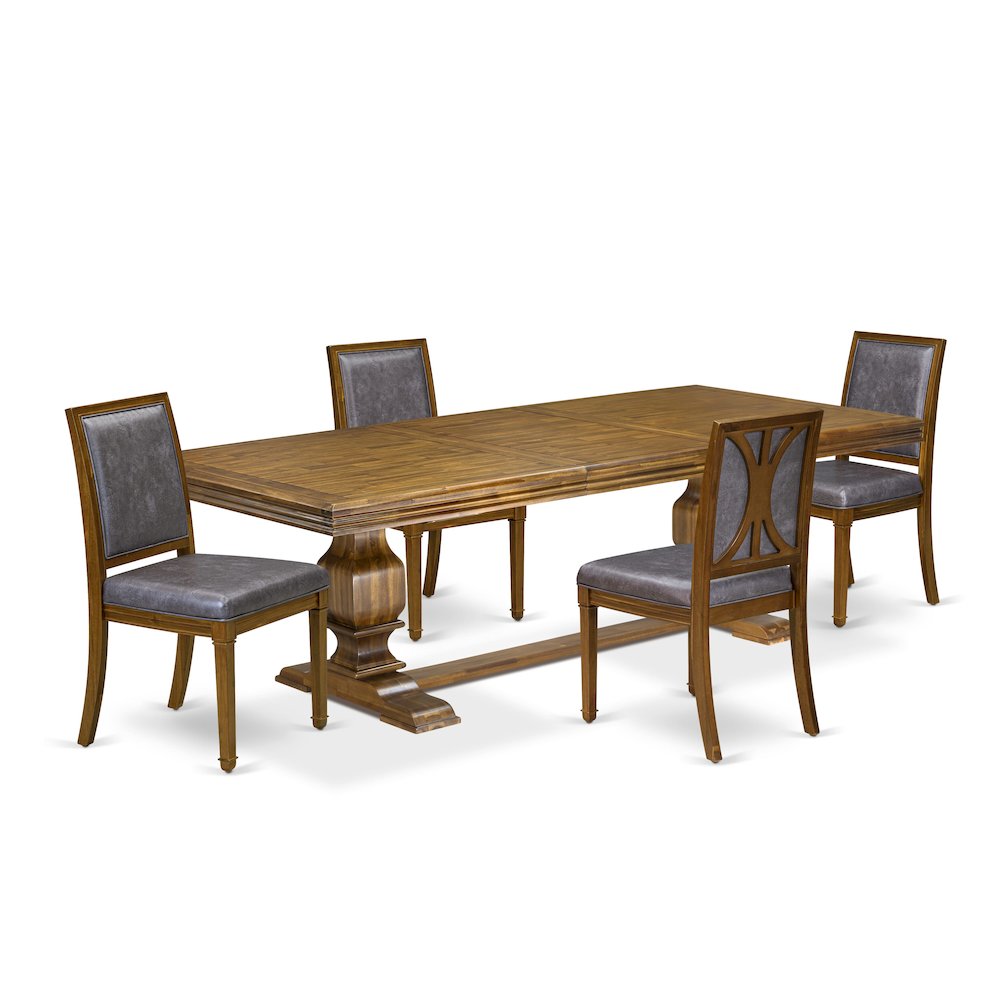 Enhance your environment with Luxy by East West Furniture, where luxury seamlessly blends with functionality to achieve timeless elegance. Luxy proudly presents a captivating kitchen table set designed to infuse rustic elegance into your dining room ambiance. Our meticulously crafted 5-piece kitchen table set is tailored to elevate your dining space with both grace and practicality. Comprising a spacious Removable leaf kitchen table and 4 stylish modern dining chairs, each element is meticulously crafted to enhance your dining experience. The chairs feature luxurious Light Beige PU Leather upholstery, accentuated by a charming High backrest for an extra touch of sophistication. Upholstered in PU Leather, the seats ensure comfort during extended meals or gatherings. The tabletop and base of the table showcase a stunning Antique Walnut finish, introducing a hint of vintage charm into your decor. Constructed from durable Acacia Wood, this dining set not only captivates visually but also promises longevity. Elevate your dining area with this timeless and versatile dining table set, ideal for everyday meals or special occasions. The kitchen chairs in this dining set are adorned with PU Leather seats and High backs, enriching the space with visual depth and texture.