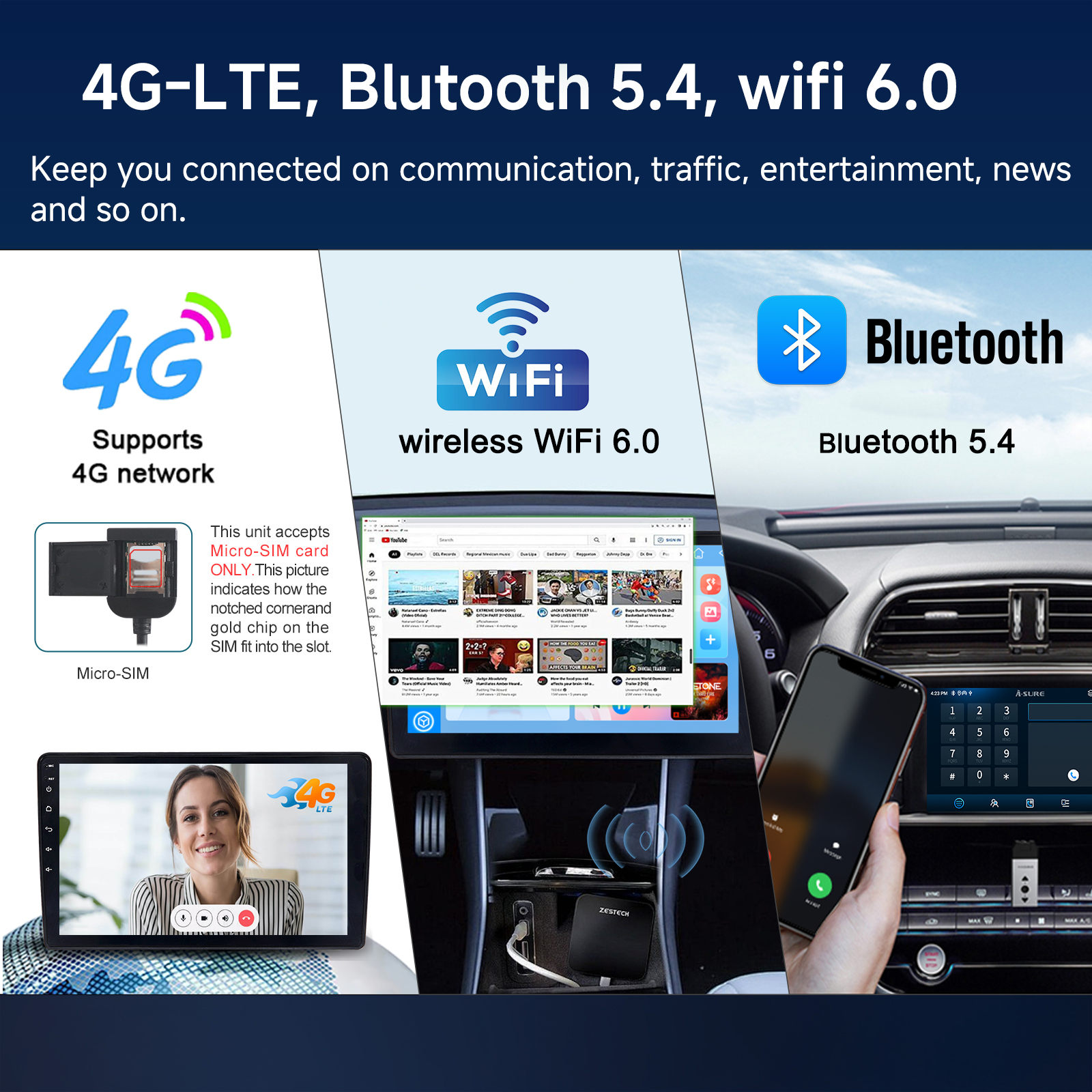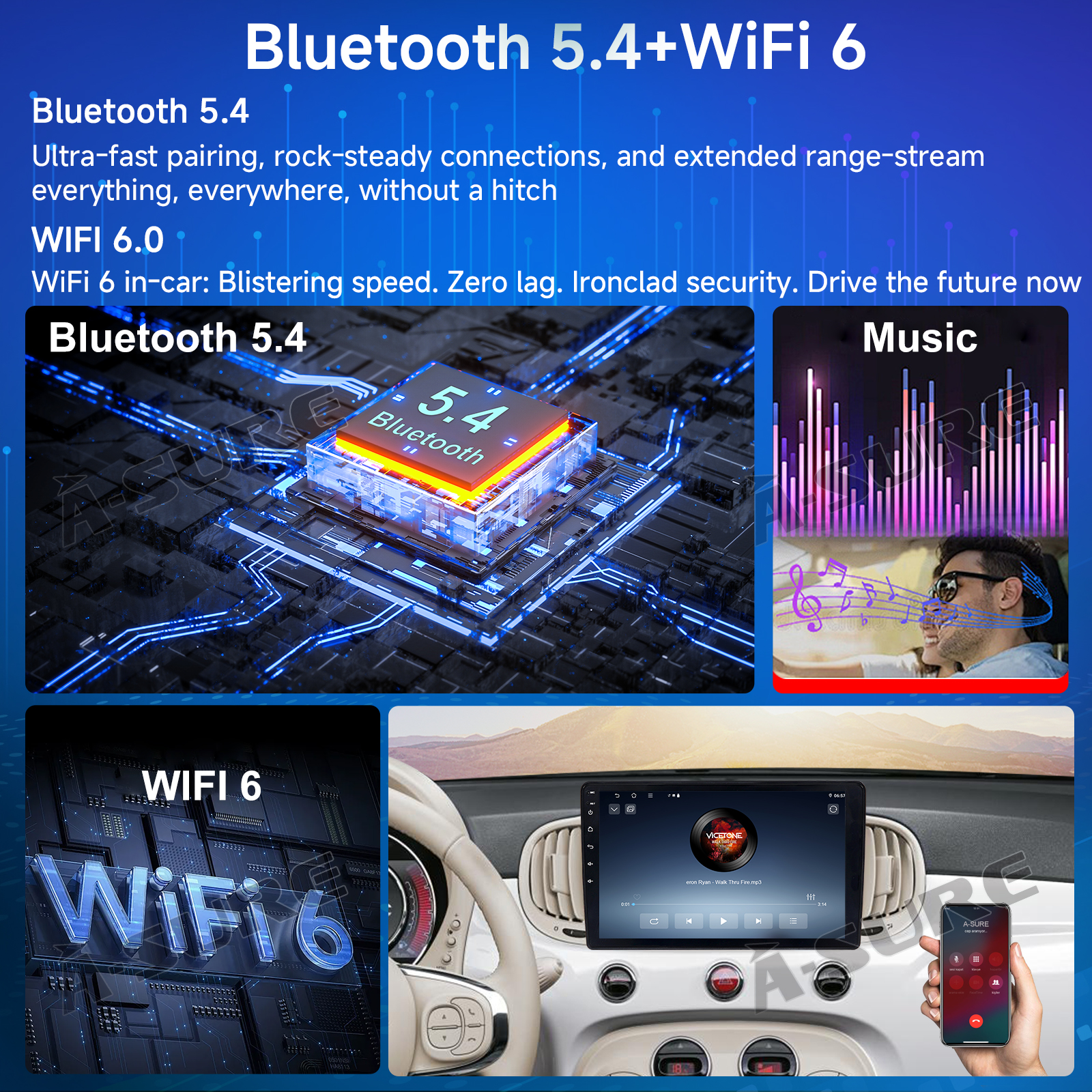 Bluetooth 5.4 & WiFi 6.0 for wireless audio/video streaming and screen extension.