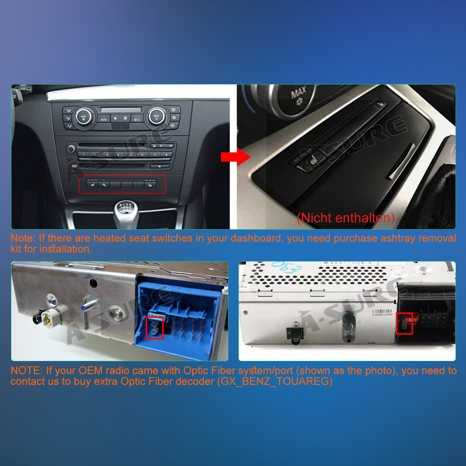 Note:If there are heatedtsches in your dashboard, you need purchase ashtray removal.