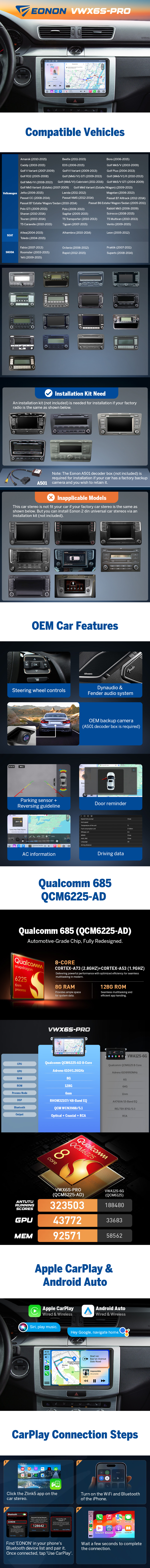 The VWX6S PRO brings you flagship smartphone speed, stunning QLED visibility, and premium DSP sound engineered for VW/Skoda/SEAT dashboards.