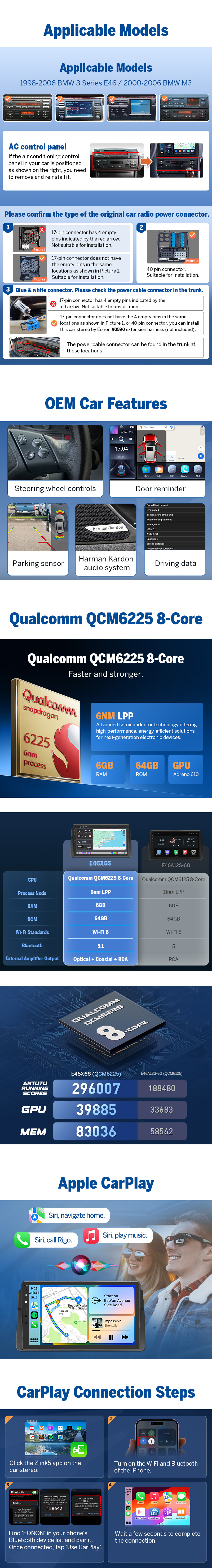 The E46X6S combines Factory-perfect integration, audiophile-grade DSP sound, and next-generation connectivity — designed for drivers who refuse to compromise on performance, safety, or factory features.