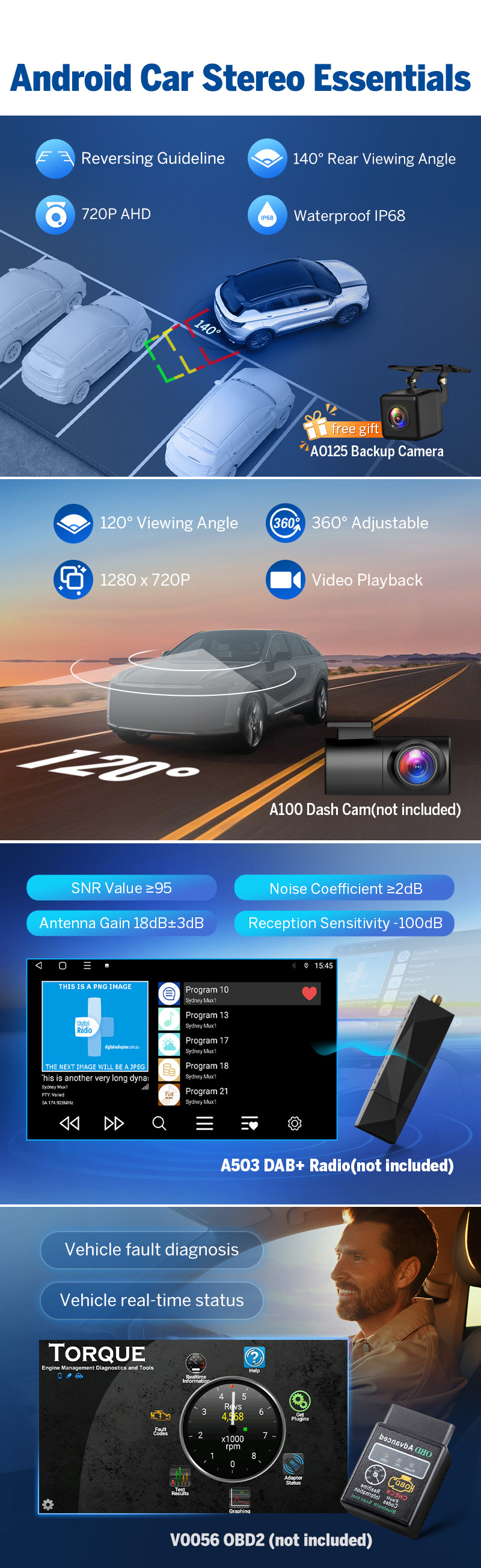 | Support | OBD2, DVR, 4G, 3G, Backup camera |