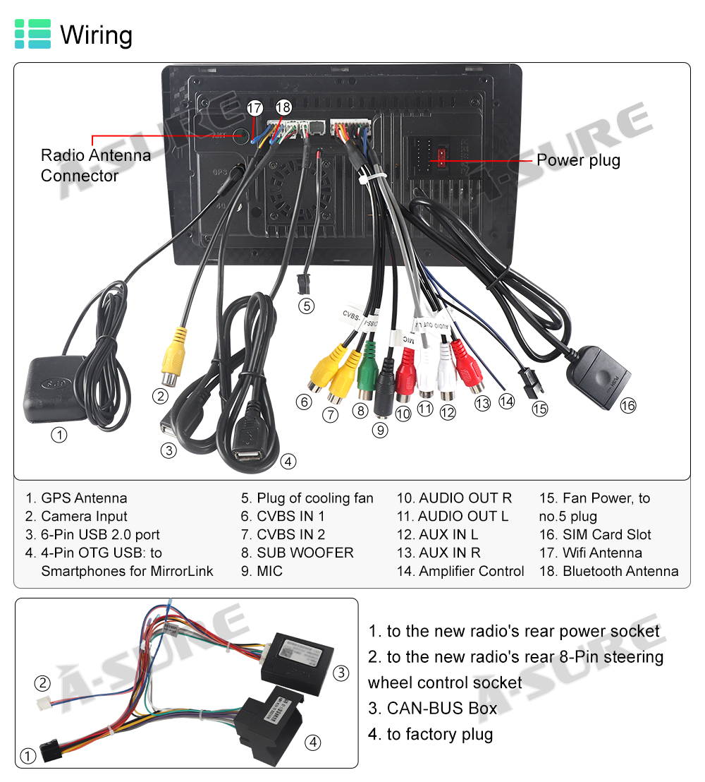 Steering wheel control compatible(If equipped with a CANBUS decoder box, connect and set the correct CANBUS path up for immediate use.