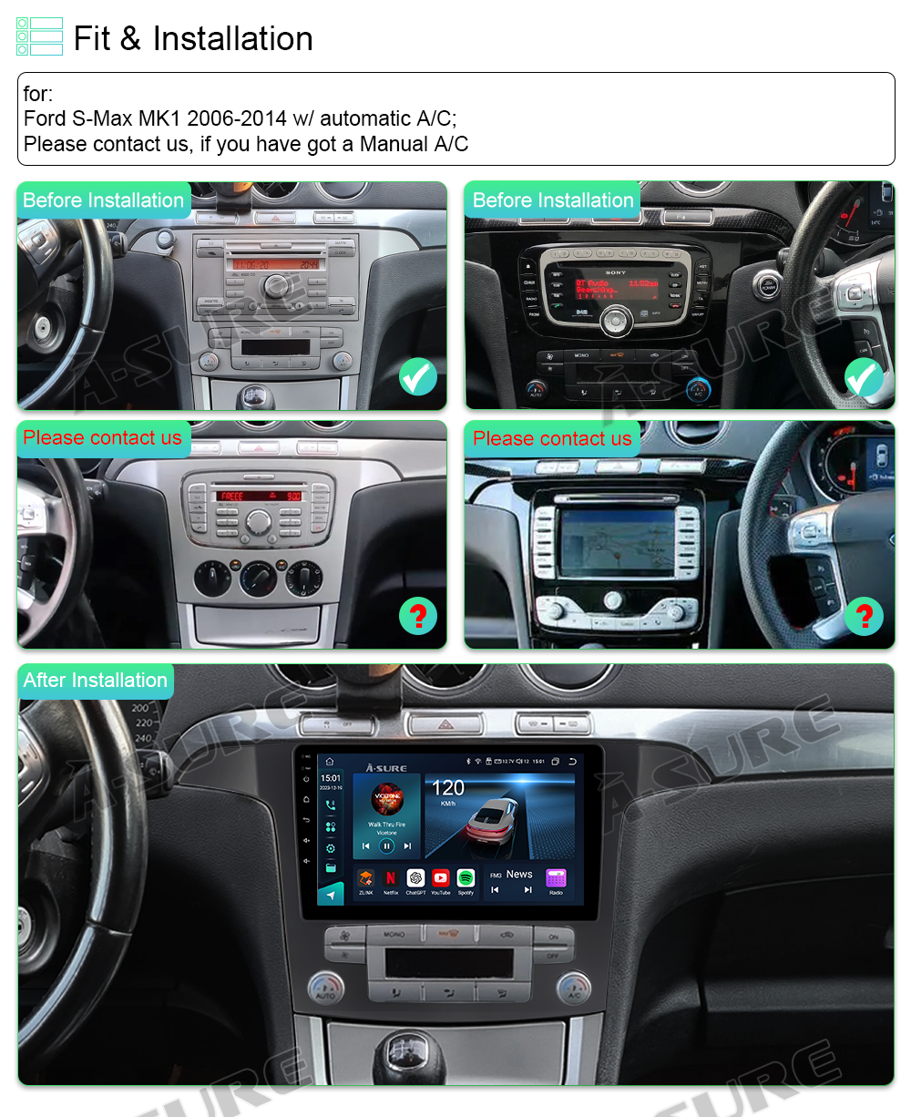 | Compatible Vehicle Model1 | For Ford S-Max 2006-2014 with Auto AC |