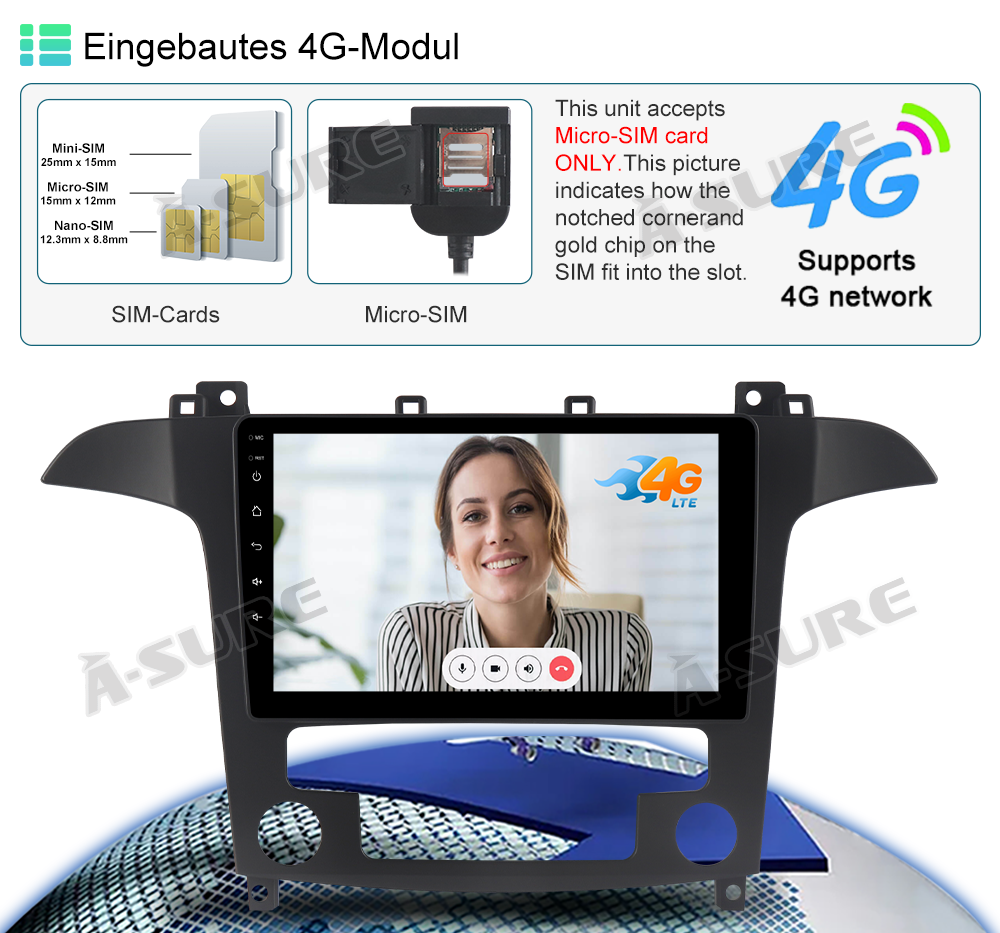 DAB+ 8-Core Head Unit Android 14 4+64G Car Stereo For Ford S-Max 2006-14 &CAMERA