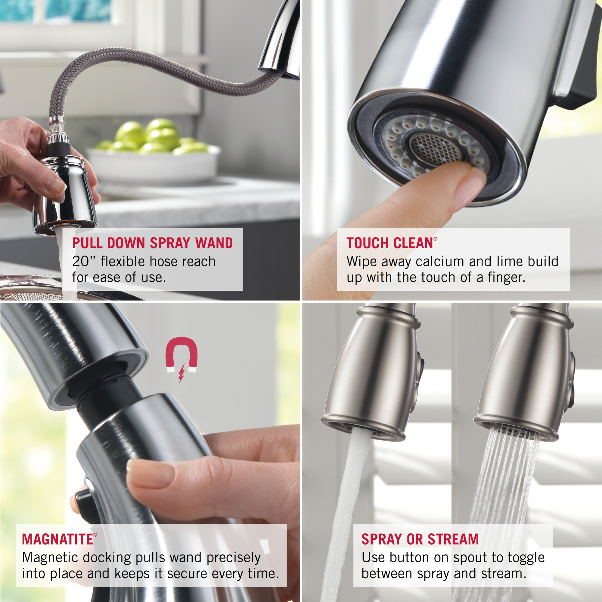 Multi-Flow: A simple push of the toggle on the spray head increases the 1.5gpm water flow to a higher volume on demand. So, kitchen tasks, like quickly filling a pot, vase or the sink, become easier.