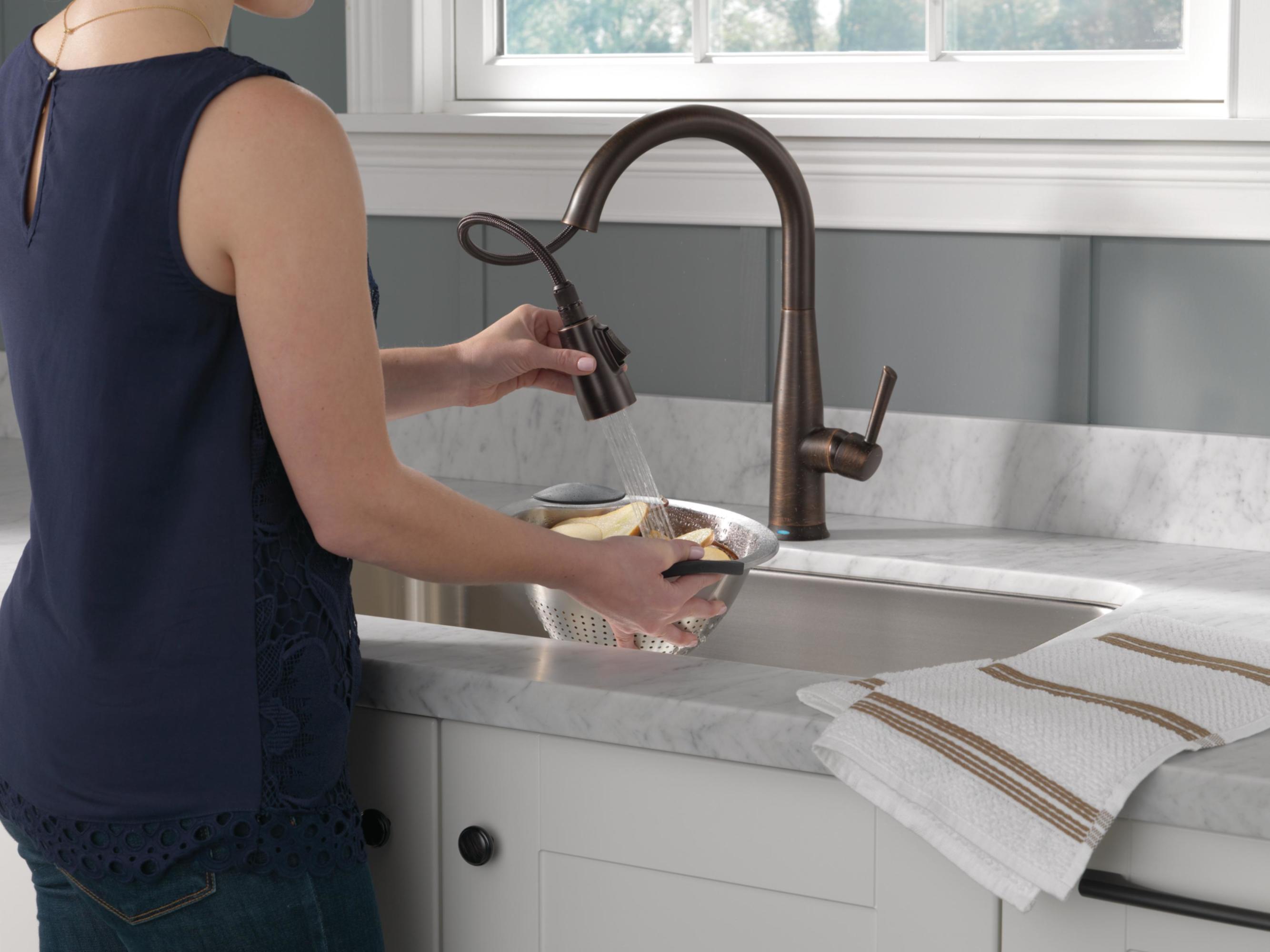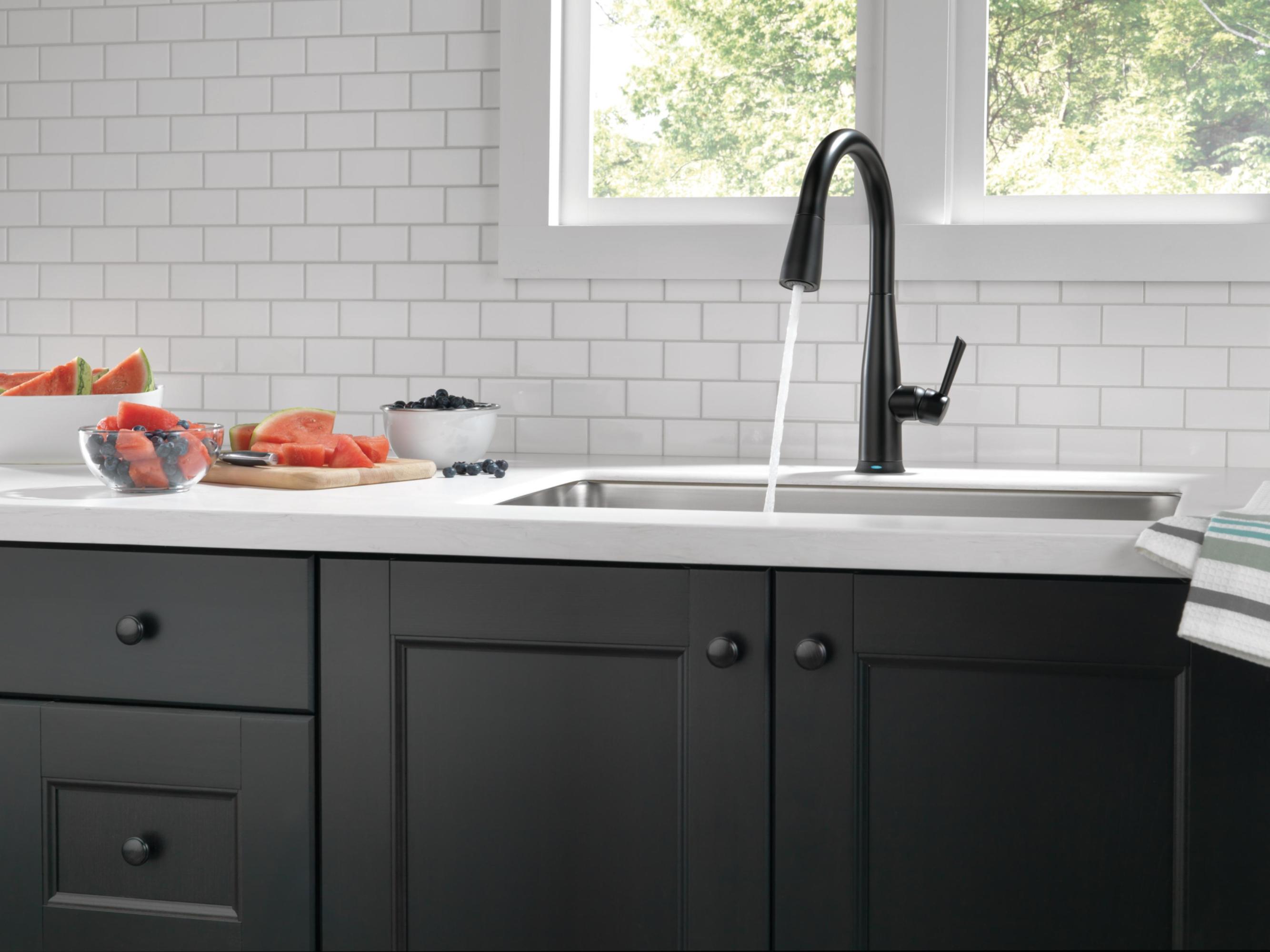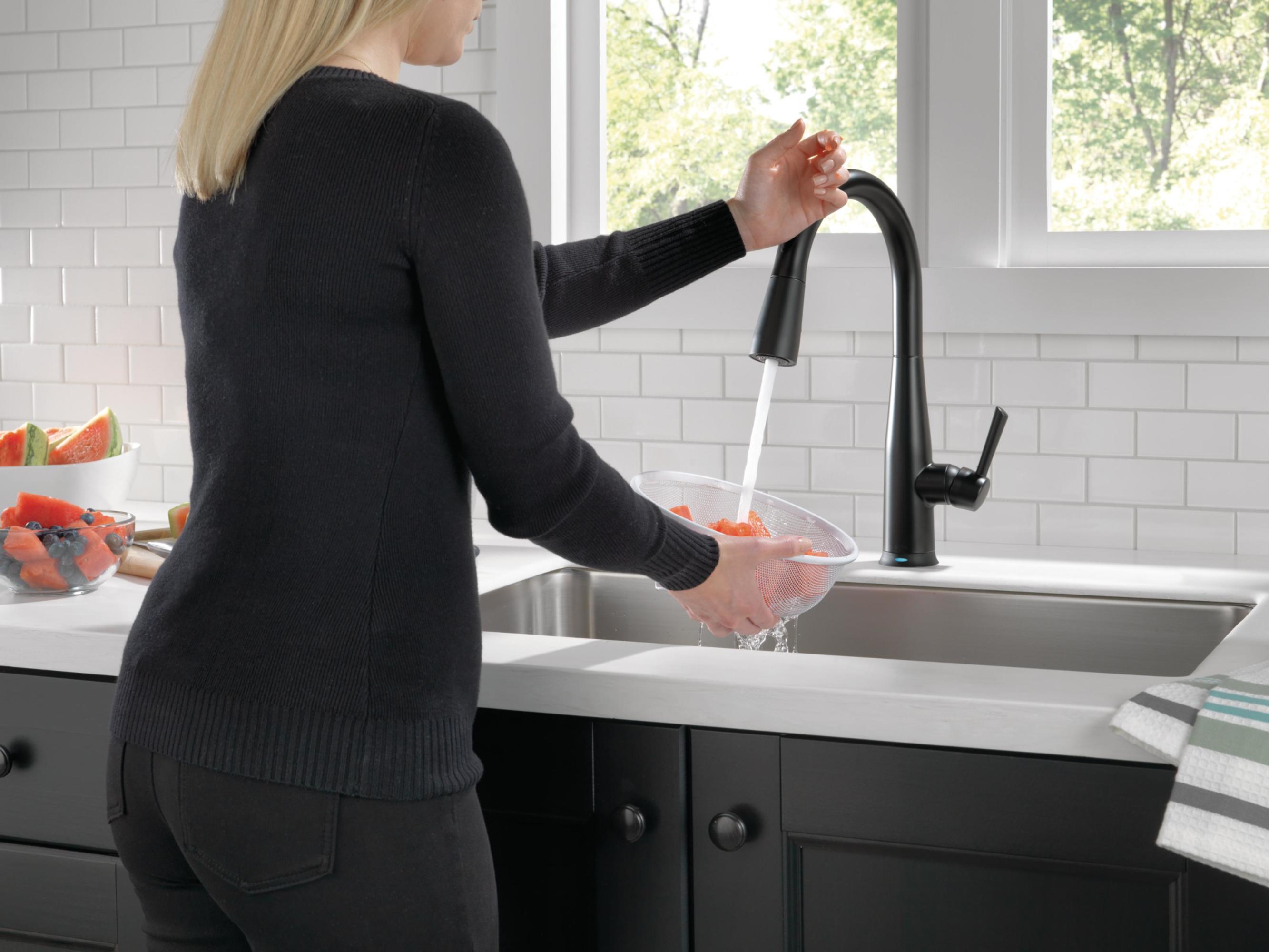 Item DescriptionTouch it on. Touch it off. Whether you have two full hands or 10 messy fingers, Delta® Touch2O® Technology helps keep your faucet clean, even when your hands aren’t. A simple touch anywhere on the spout or handle with your wrist or forearm activates the flow of water at the temperature where your handle is set. The Delta TempSense™ LED light changes color to alert you to the water’s temperature and eliminate any possible surprises or discomfort. Delta® MagnaTite® Docking uses a powerful integrated magnet to pull your faucet spray wand precisely into place and hold it there so it stays docked when not in use. Delta® faucets with DIAMOND™ Seal Technology perform like new for life with a patented design which reduces leak points, is less hassle to install and lasts twice as long as the industry standard*. Kitchen faucets with Touch-Clean® Spray Holes allow you to easily wipe away calcium and lime build-up with the touch of a finger. You can install with confidence, knowing that Delta faucets are backed by our Lifetime Limited Warranty. Electronic parts are backed by our 5-year electronic parts warranty. *Industry standard is based on ASME A112.18.1 of 500,000 cycles.