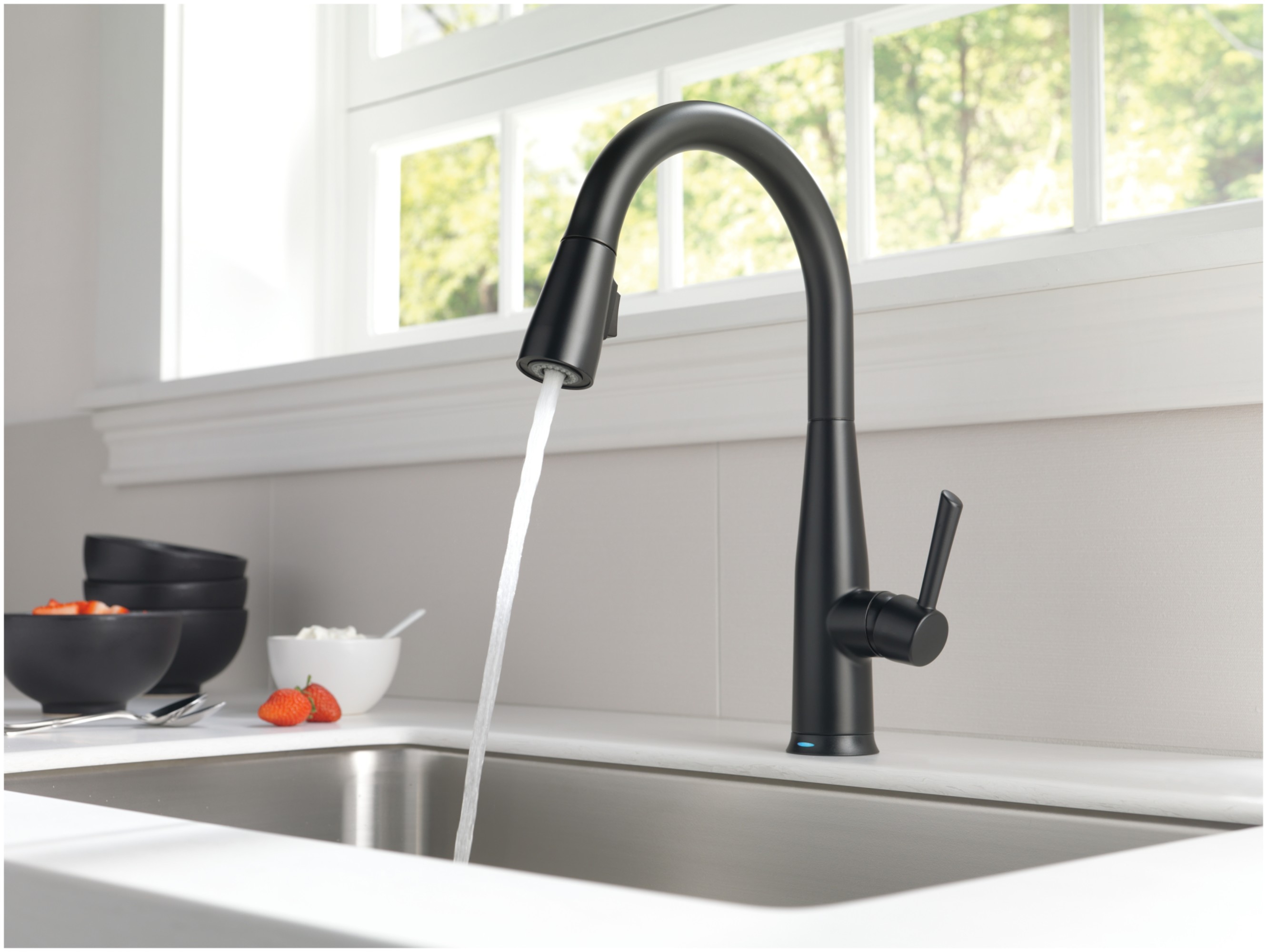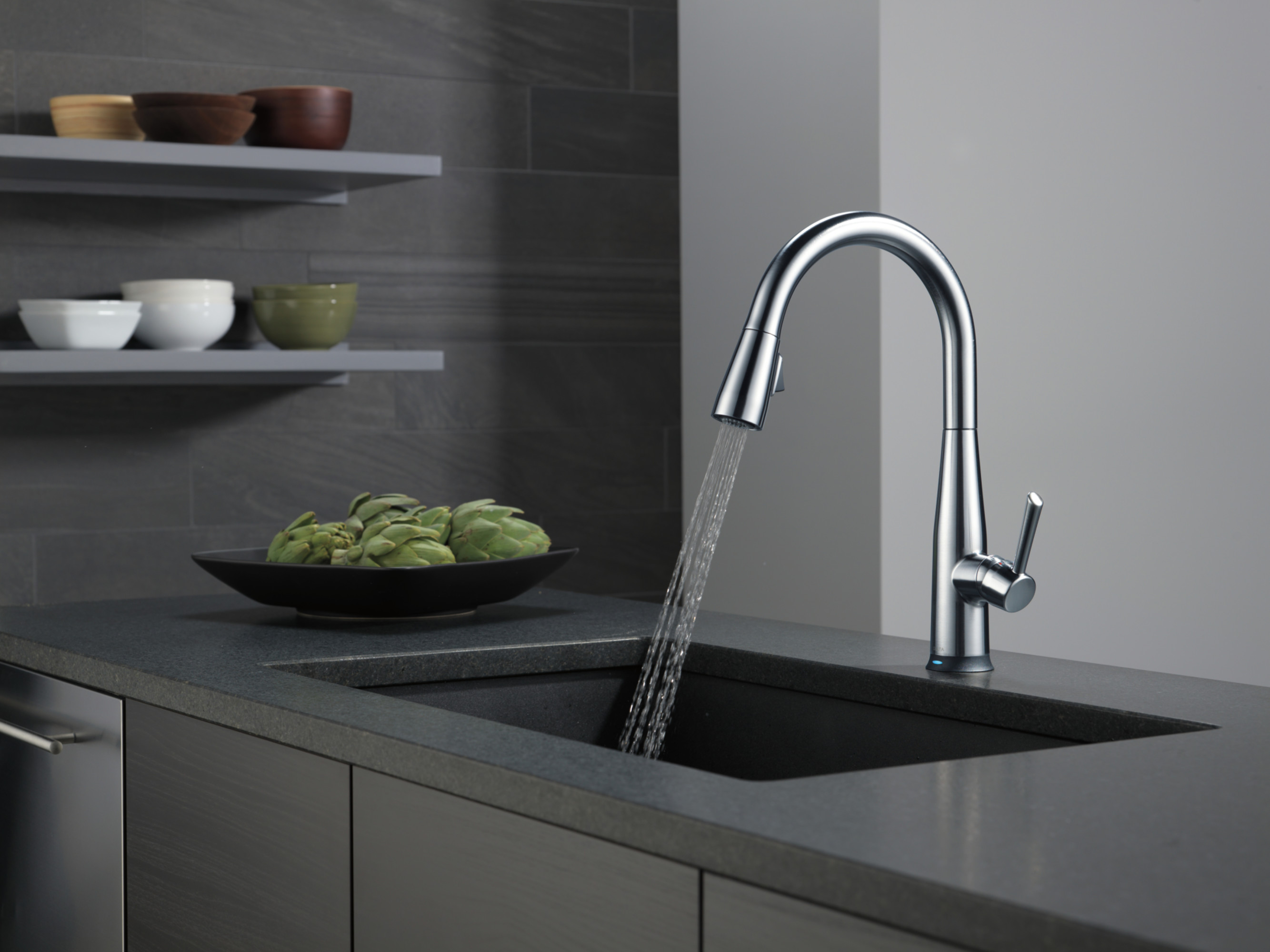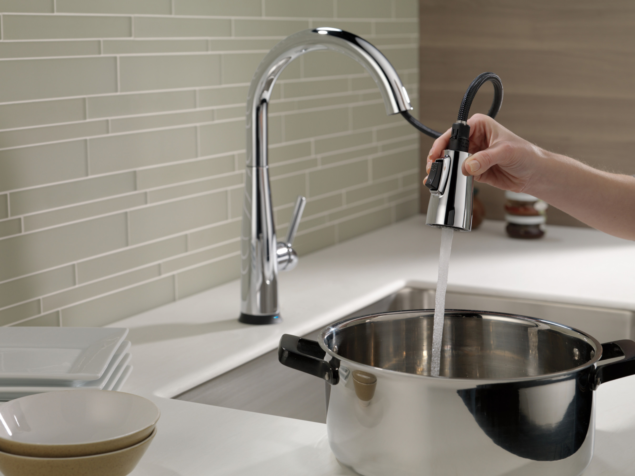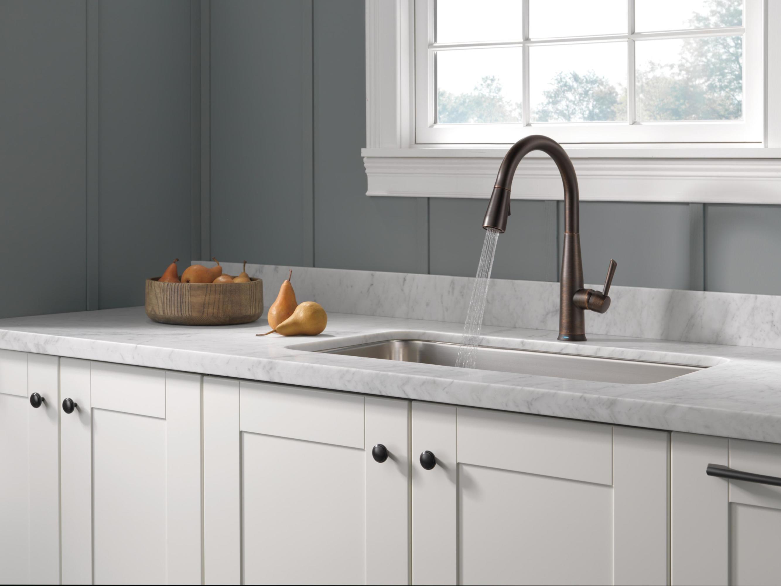Item DescriptionTouch it on. Touch it off. Whether you have two full hands or 10 messy fingers, Delta® Touch2O® Technology helps keep your faucet clean, even when your hands aren’t. A simple touch anywhere on the spout or handle with your wrist or forearm activates the flow of water at the temperature where your handle is set. The Delta TempSense™ LED light changes color to alert you to the water’s temperature and eliminate any possible surprises or discomfort. Delta® MagnaTite® Docking uses a powerful integrated magnet to pull your faucet spray wand precisely into place and hold it there so it stays docked when not in use. Delta® faucets with DIAMOND™ Seal Technology perform like new for life with a patented design which reduces leak points, is less hassle to install and lasts twice as long as the industry standard*. Kitchen faucets with Touch-Clean® Spray Holes allow you to easily wipe away calcium and lime build-up with the touch of a finger. You can install with confidence, knowing that Delta faucets are backed by our Lifetime Limited Warranty. Electronic parts are backed by our 5-year electronic parts warranty. *Industry standard is based on ASME A112.18.1 of 500,000 cycles.