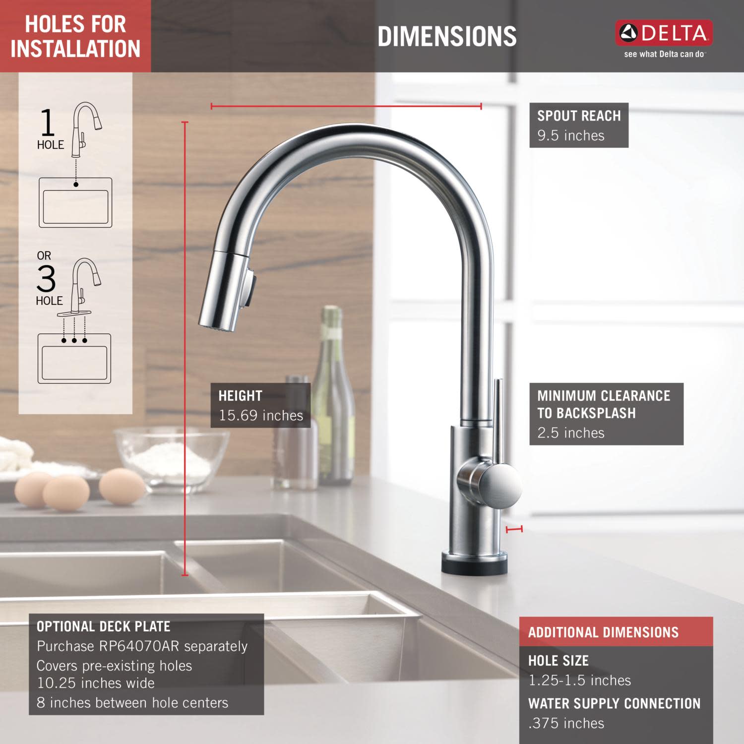 | Features | Delta 9159T-DST Trinsic Pull-Down Kitchen Faucet |