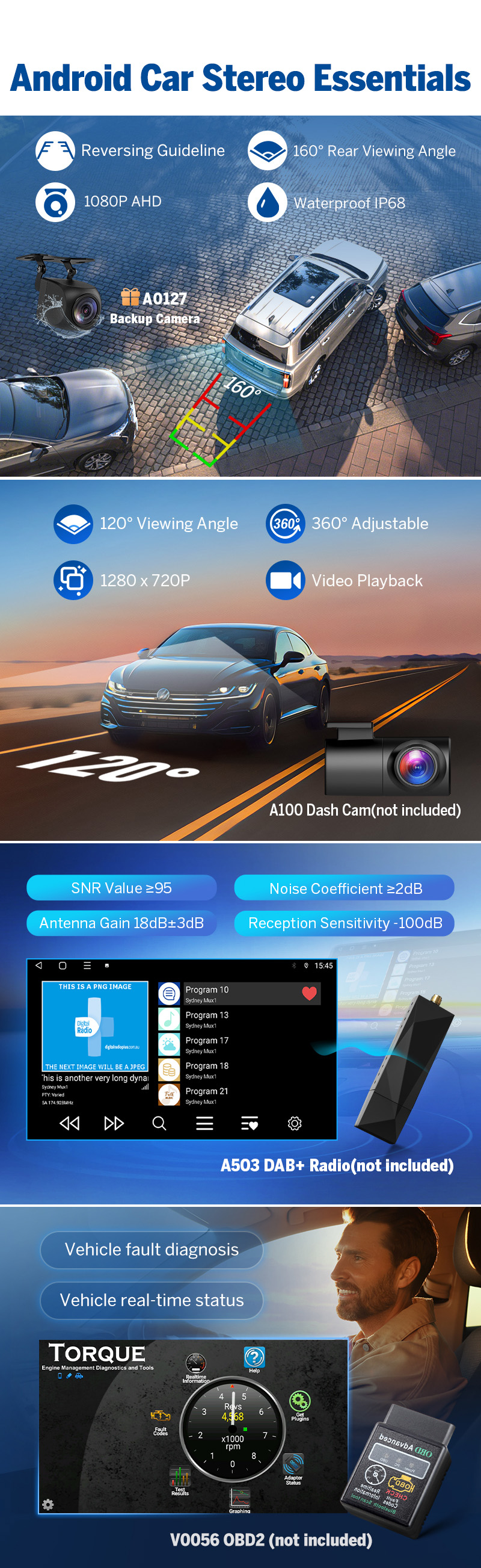 Optional Accessories Compatible – Dashcam, OBD2, DAB+ (sold separately) for full customization.