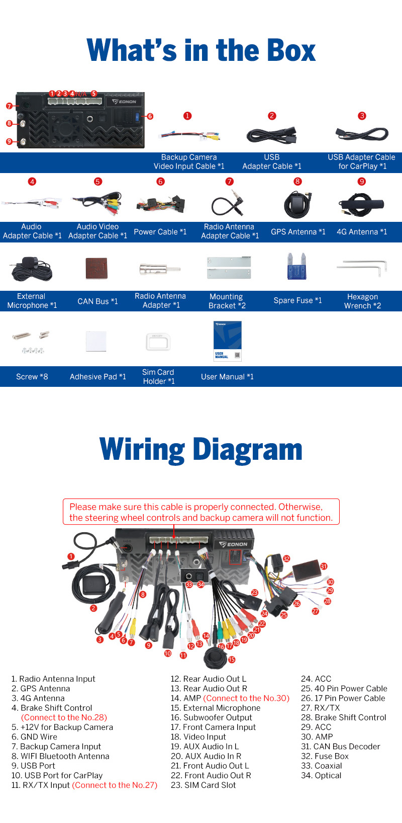 | Support | OBD2, DVR, 4G, 3G, Backup camera |