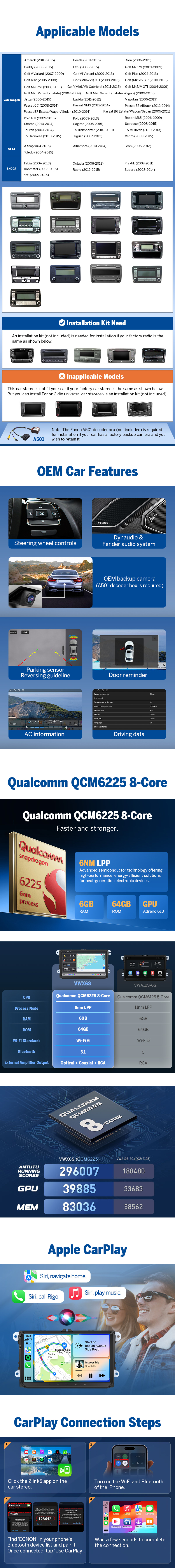 ⭐ Transform Your Driving Experience Introducing the VWX6S Qualcomm-Powered Flagship Car Stereo, engineered specifically for VW, Skoda & SEAT drivers who demand safety, precision, and Factory-grade reliability. Whether you drive daily commutes or long road trips, enjoy a safer, hands-free, fully connected dashboard—without losing factory features like steering wheel controls, reverse camera, parking sensors and climate display.