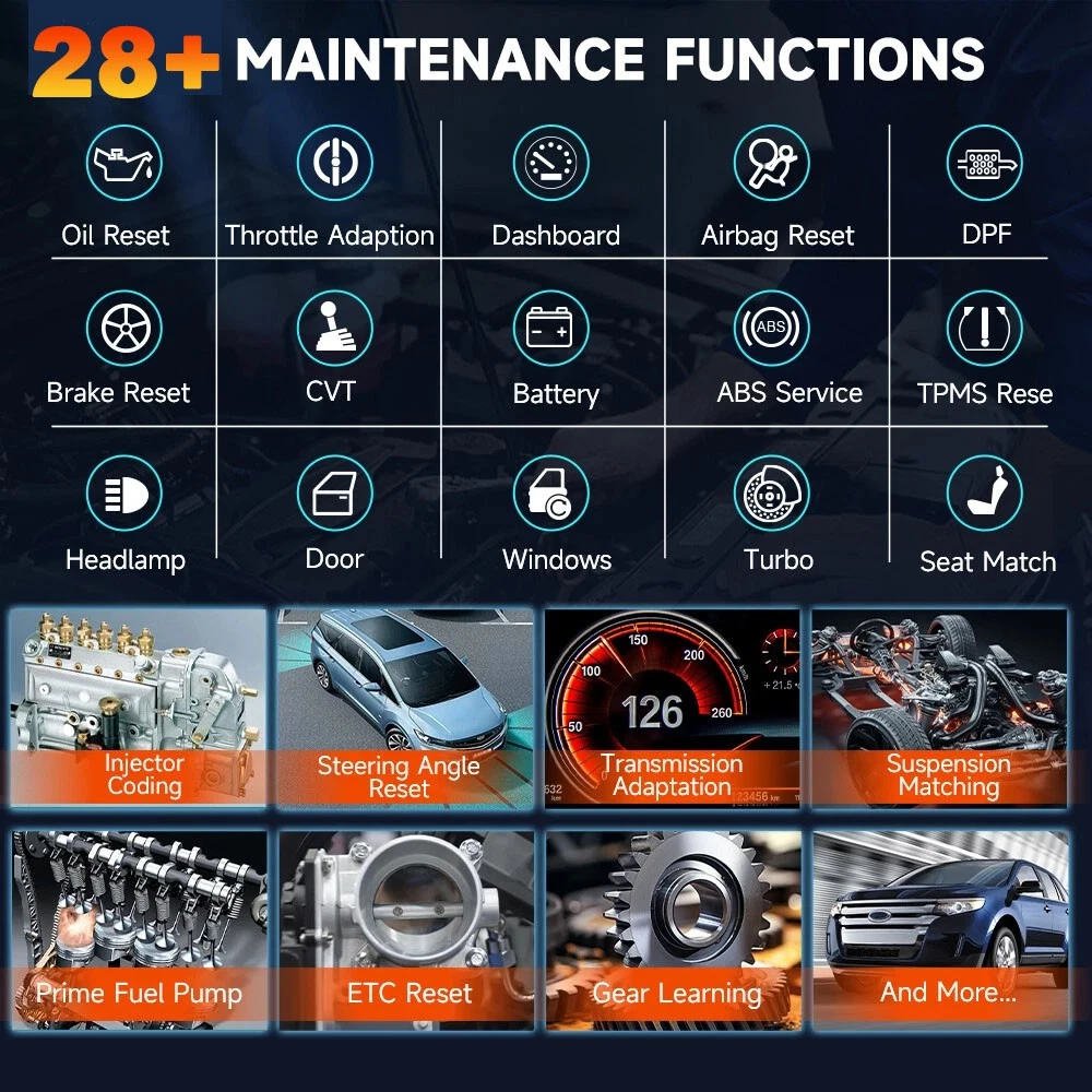 | Supported System | ABS, SAS, TPMS, SRS, EPB, DPF, Engine, Transmission, Headlight, Battery, All Systems Diagnostic |