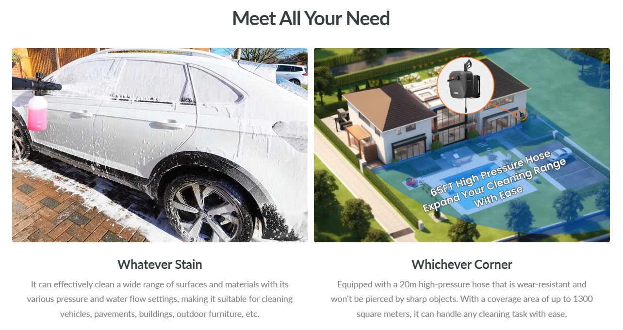 The 180° rotating bracket combined with a wall-mounted design provides a flexible cleaning experience for every corner.