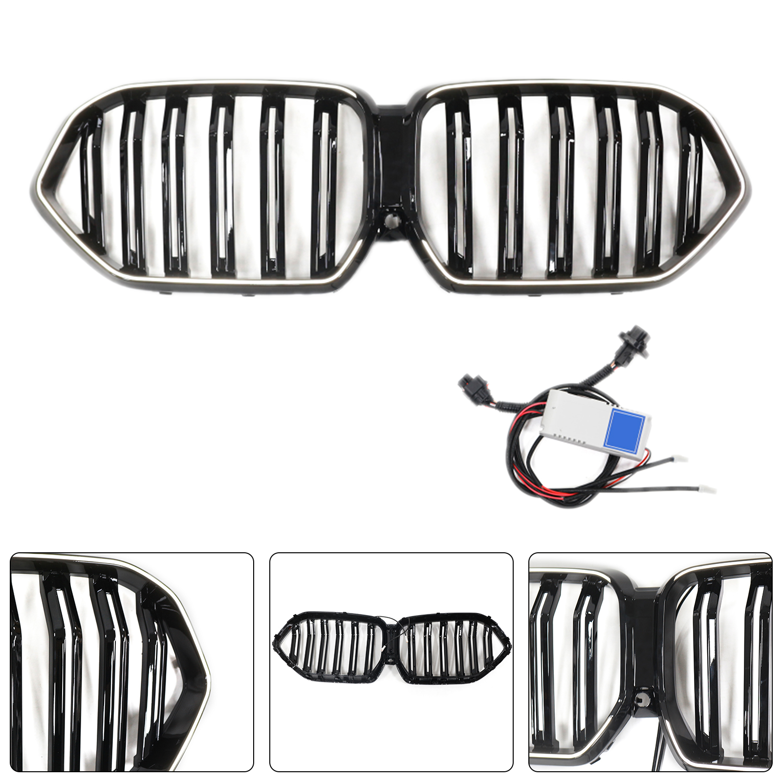 Gloss Black Front Bumper Grille Fit BMW X6 G06 M50i 2020-2022 W/Camera Hole Q