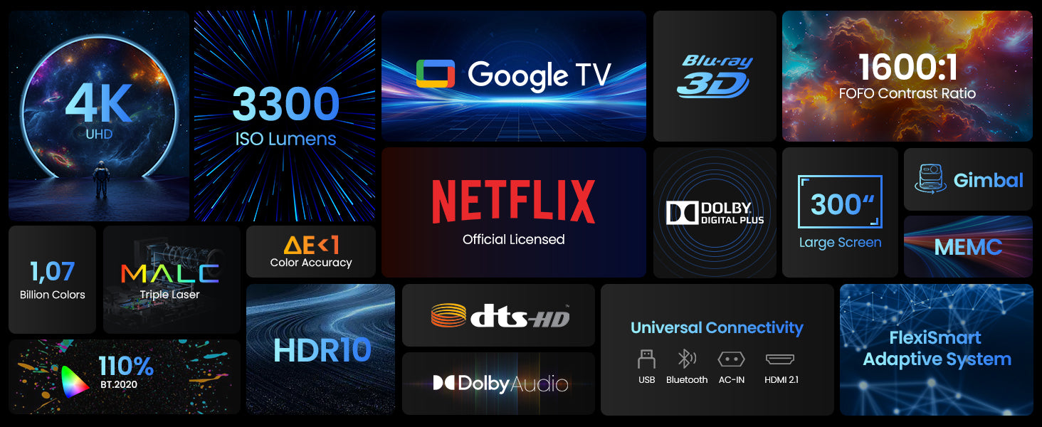 4K Triple-Laser Smart Bright Mini Portable Projector 3500 ANSI Lumens