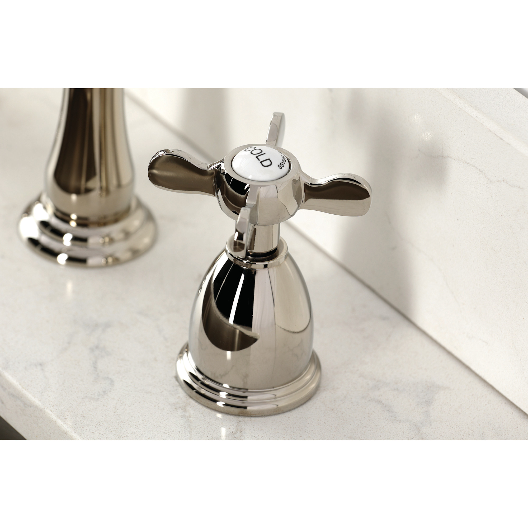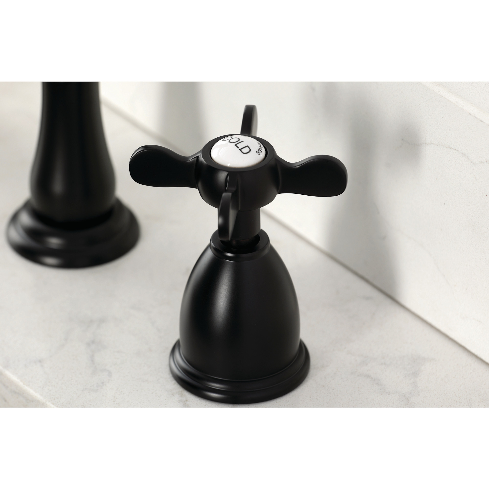 - Double cross handles control the flow and temperature of water