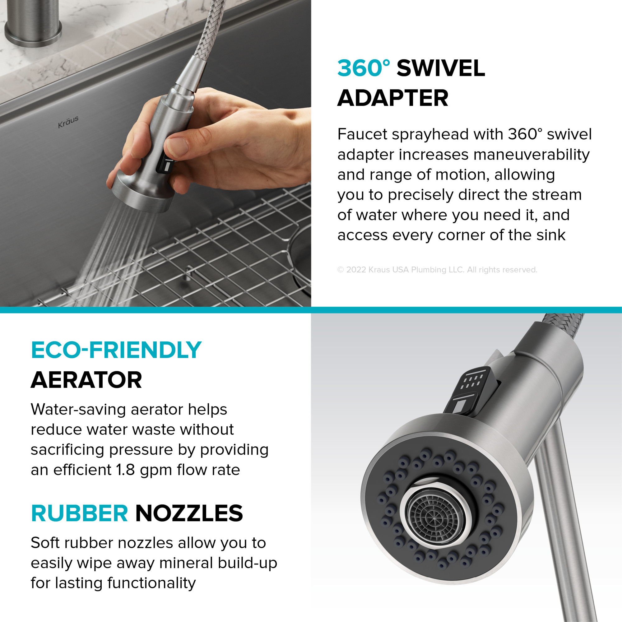 30-day returns, buyer pays return shippingKraus KPF-1610 Bolden 1.8 GPM Single Hole Pre-Rinse Pull Down Kitchen Faucet