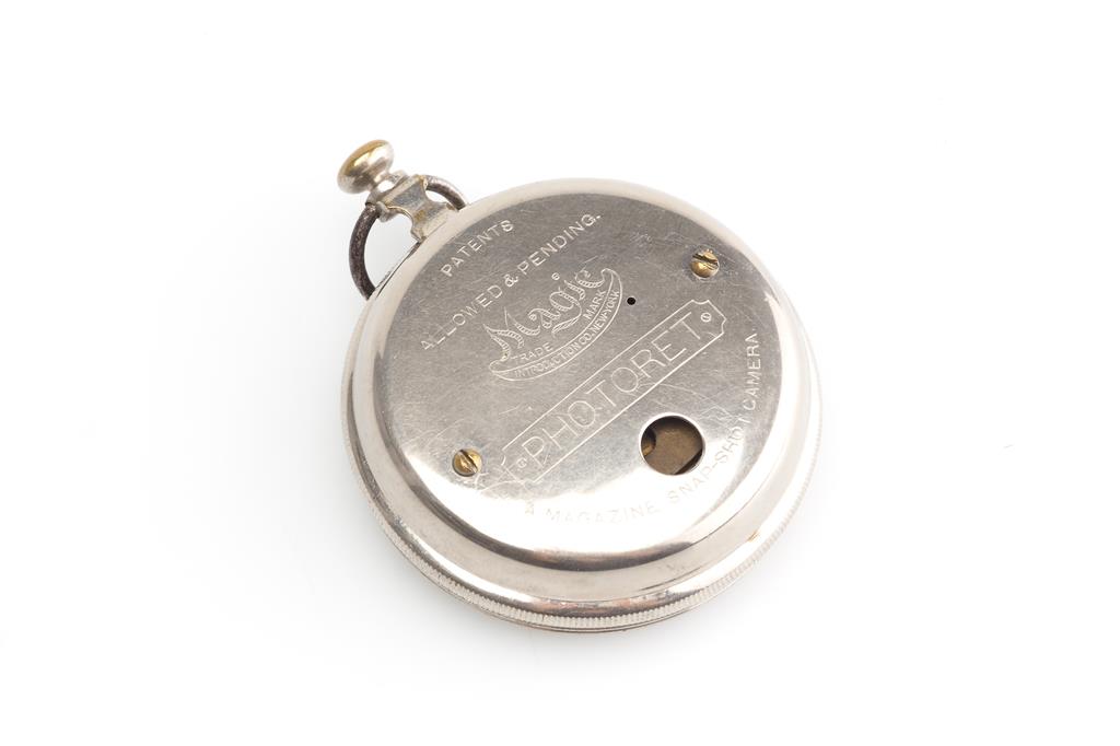 Everything is carefully checked with bright light sources and appropriate technical camera testing equipment.Magic Introduction Co. Photoret Watch Type Camera Miniature