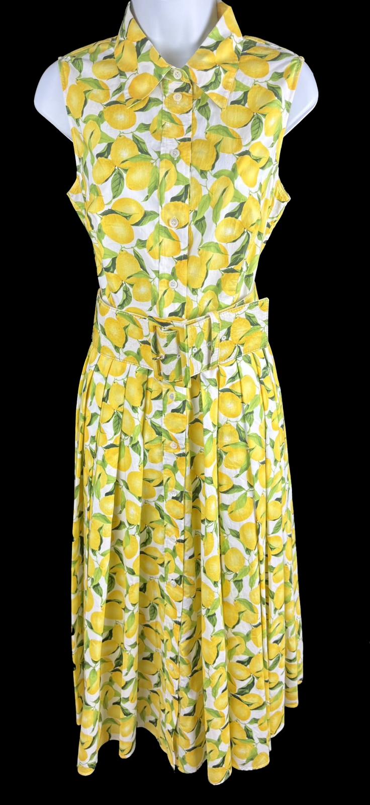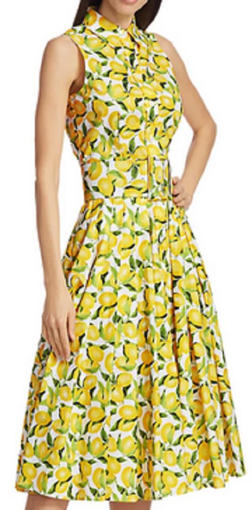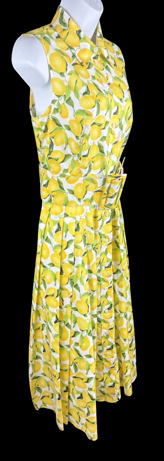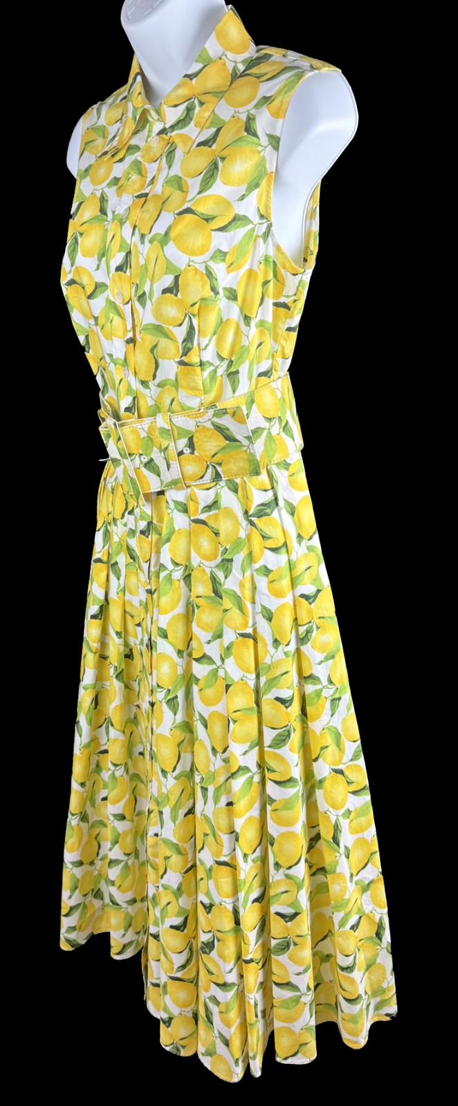 Michael Kors Collection Cotton Lemon Print Sleeveless Shirtdress
