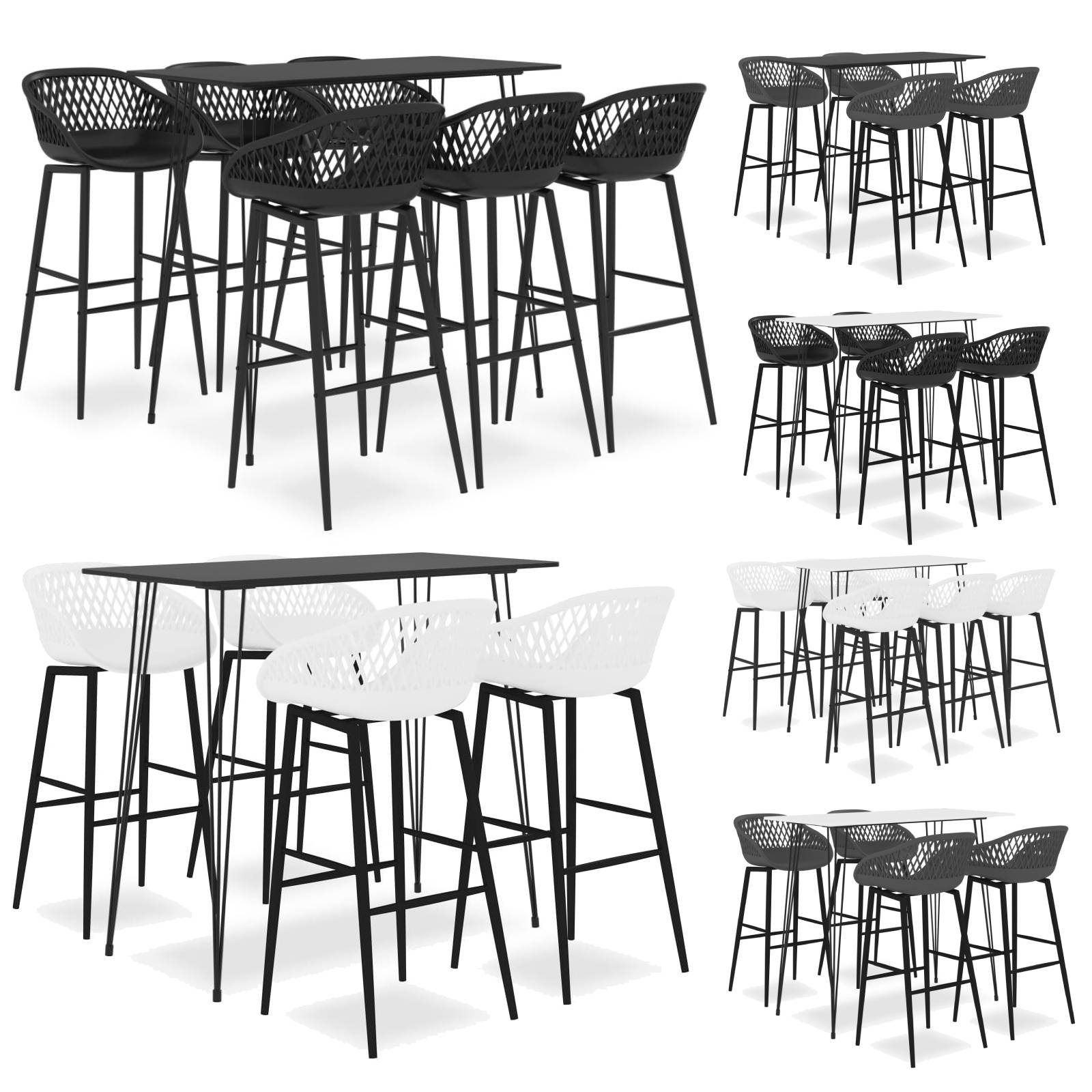 Featuring a modern and contemporary design, our bar set is perfect to go with any modern homes, gardens, bars, pubs or restaurants. Its clean and contemporary design will complement any interior decor. The tabletop is made of MDF which is easy to clean. The powder-coated metal frame adds to bar table's stability and sturdiness. The bar stools have an ergonomically designed seat with integrated low backrest in a mesh look. Made of robust PP and supported by strong powder-coated metal legs, these counter chairs are sturdy and durable.