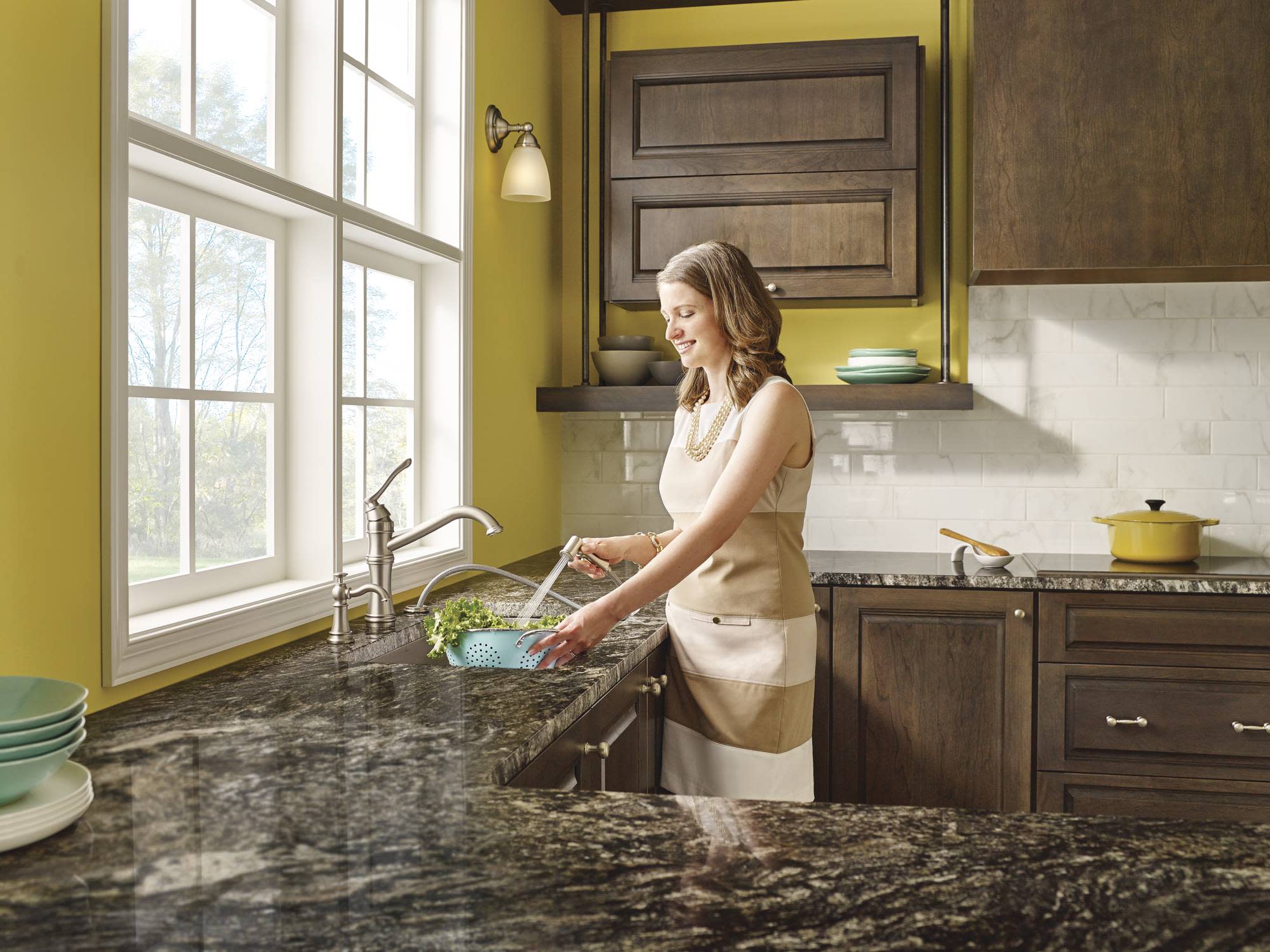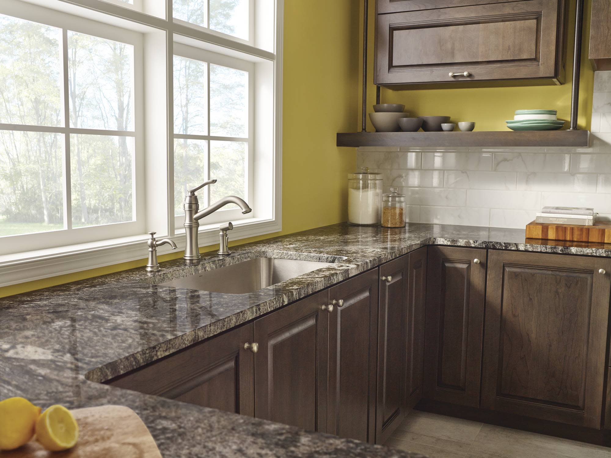 - High-arch spout design provides optimal room under the faucet for any size task