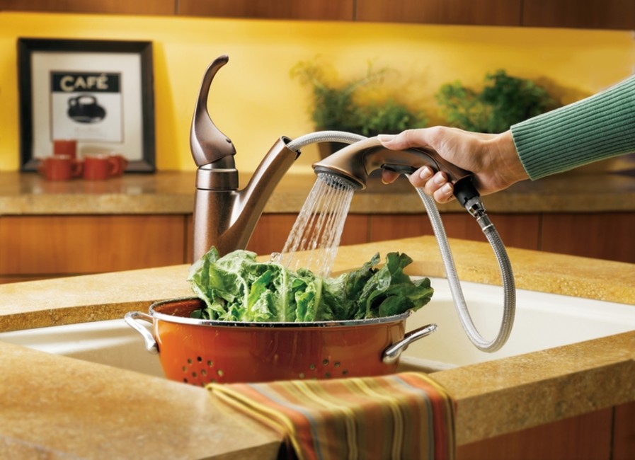 - Pullout spray faucet head with 68" hose enhances faucets versatility